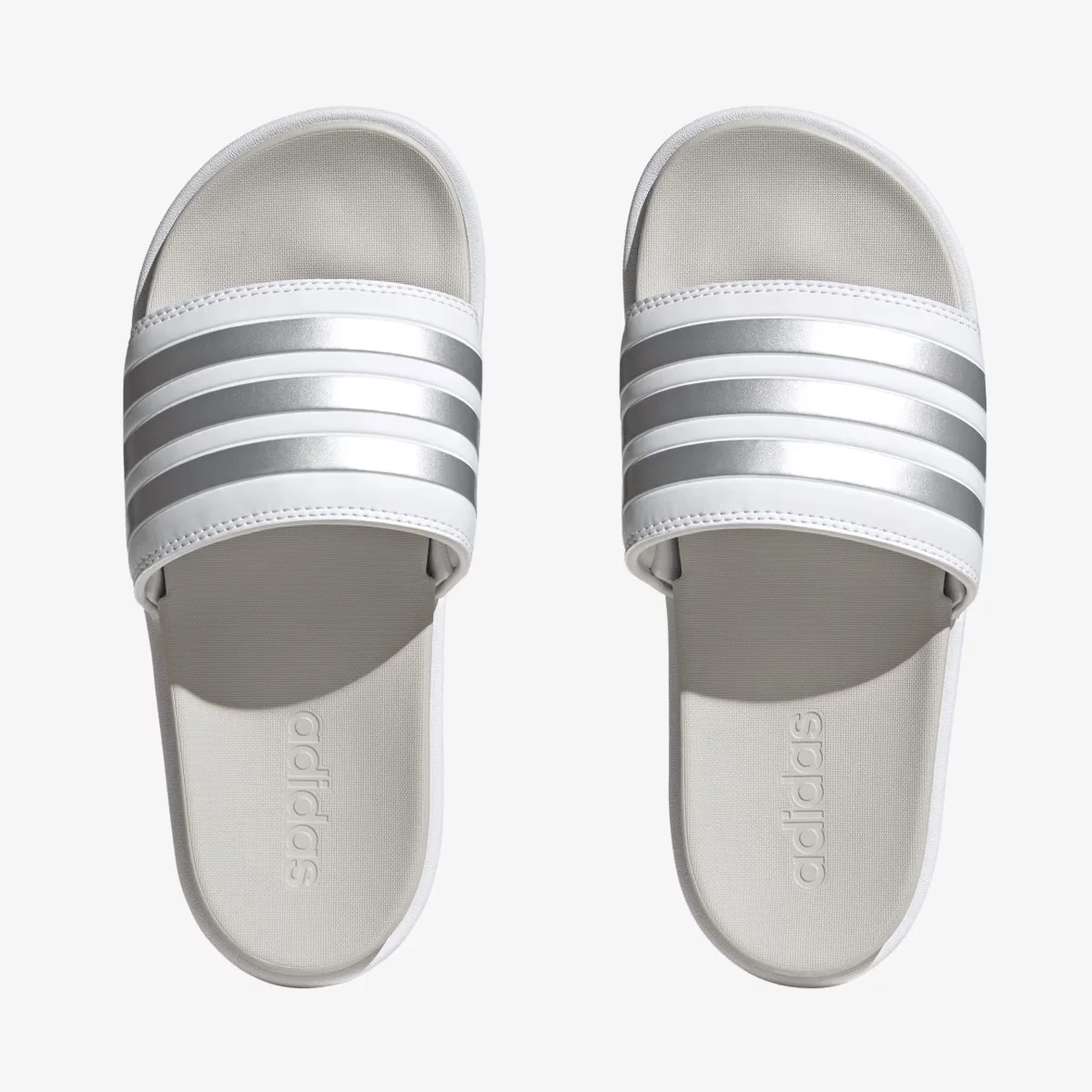 The coolest way to show off your pedicure. These adidas platform slides look at home by the pool and in the city with 3-Stripes wrapped around the smooth bandage uppers. These sandals have a contoured footbed and a cushioned EVA outsole for maximum comfort.