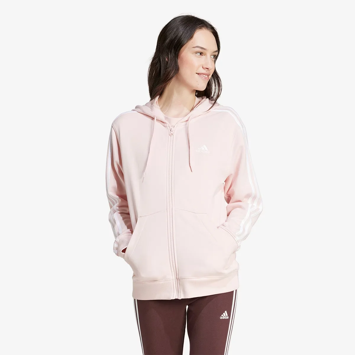 There's no wrong way to use this versatile adidas zip-up hoodie. Whether it's heading out for a day of errands or taking the night off, this soft French terry layer has you covered all day long. Don't forget to use the hood. It's adjustable drawcord lets you block out the noise to get things done. Even use it for a spontaneous midday nap. Who wouldn't fall for a jacket that lets you get some extra shut eye.Our cotton products support more sustainable cotton farming.